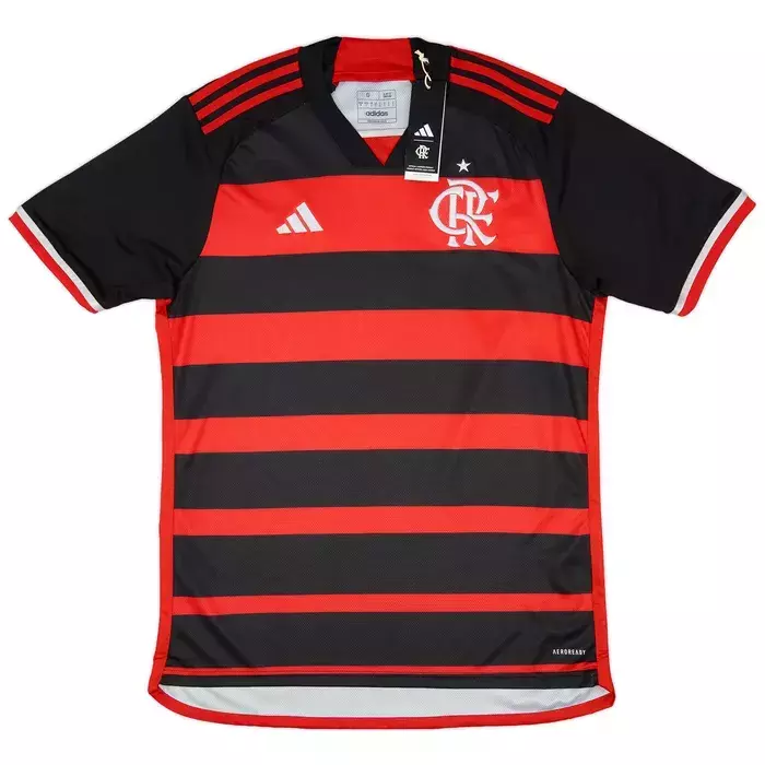 ? Design Clássico e Atemporal: As icônicas listras rubro-negras ganham destaque em um visual moderno, com gola personalizada e cortes atualizados que unem tradição e inovação.